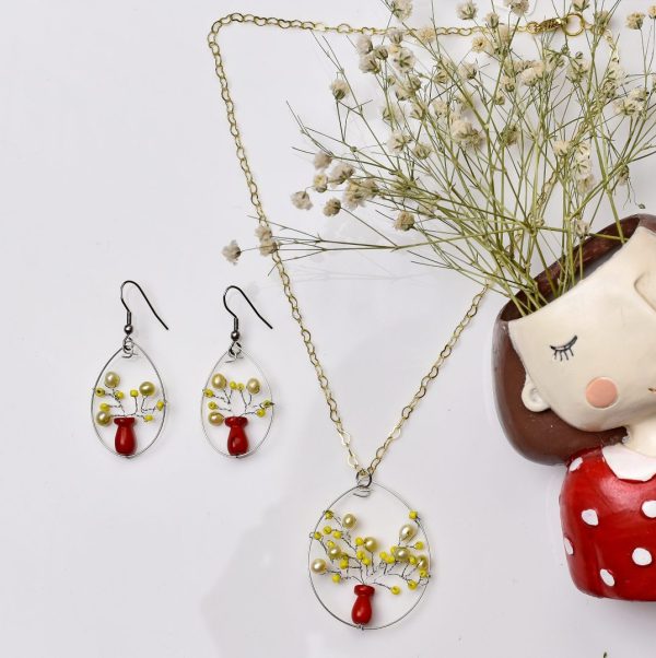 نیم ست مرجان طرح سحرا ( گوشواره، گردنبند)