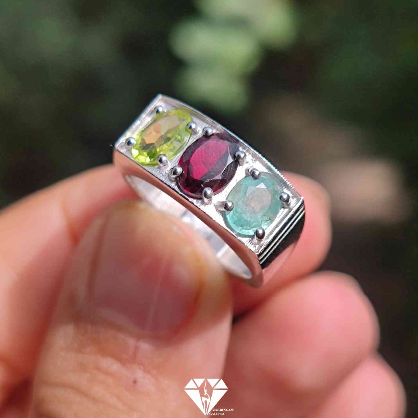 انگشتر چندجواهر مردانه گارنت، زبرجد و زمرد)