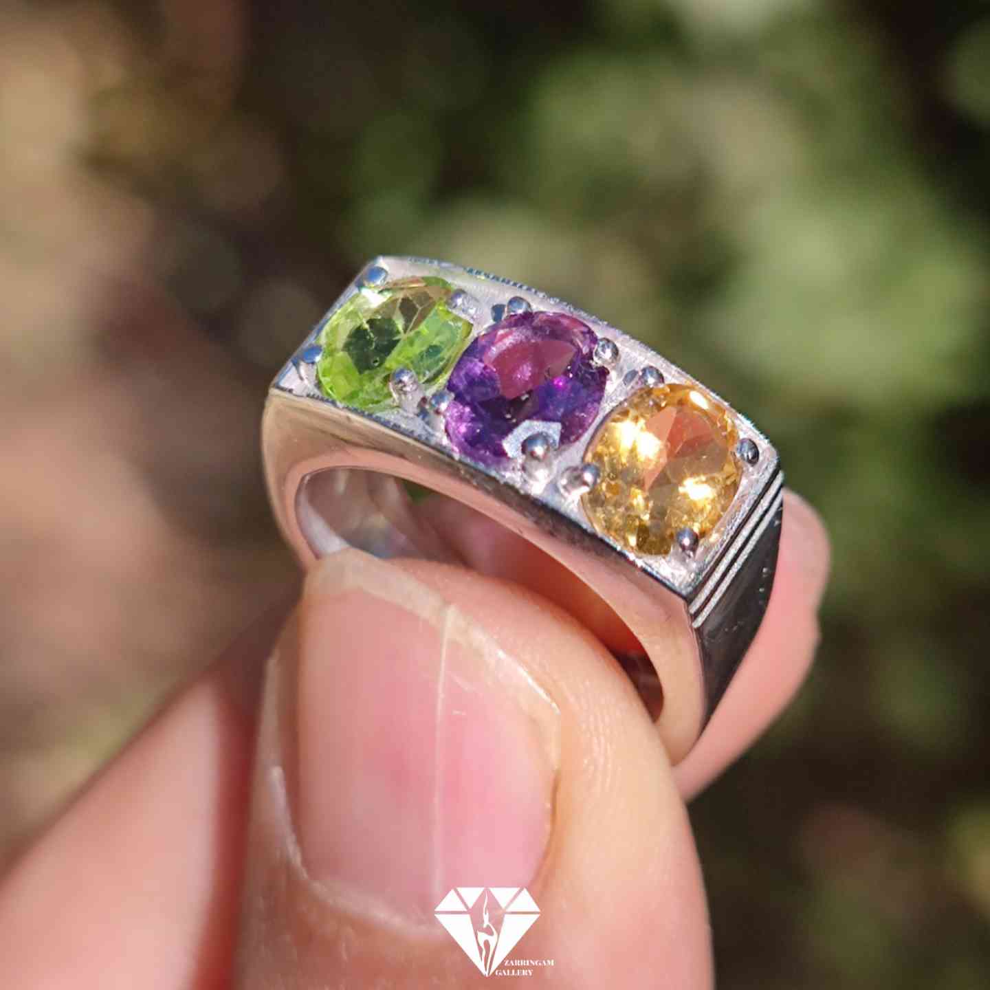 انگشتر چندجواهر مردانه ثروت (زبرجد سیترین و آمیتیست)