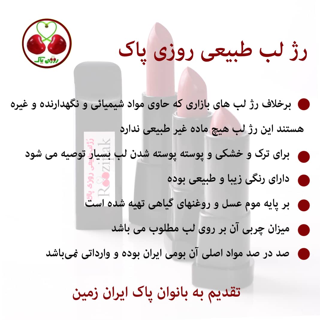 اگر به دنبال رژ لب سالم، طبیعی و بدون مواد شیمیایی هستید، رژ لب طبیعی روزی پاک بهترین انتخاب برای شماست.